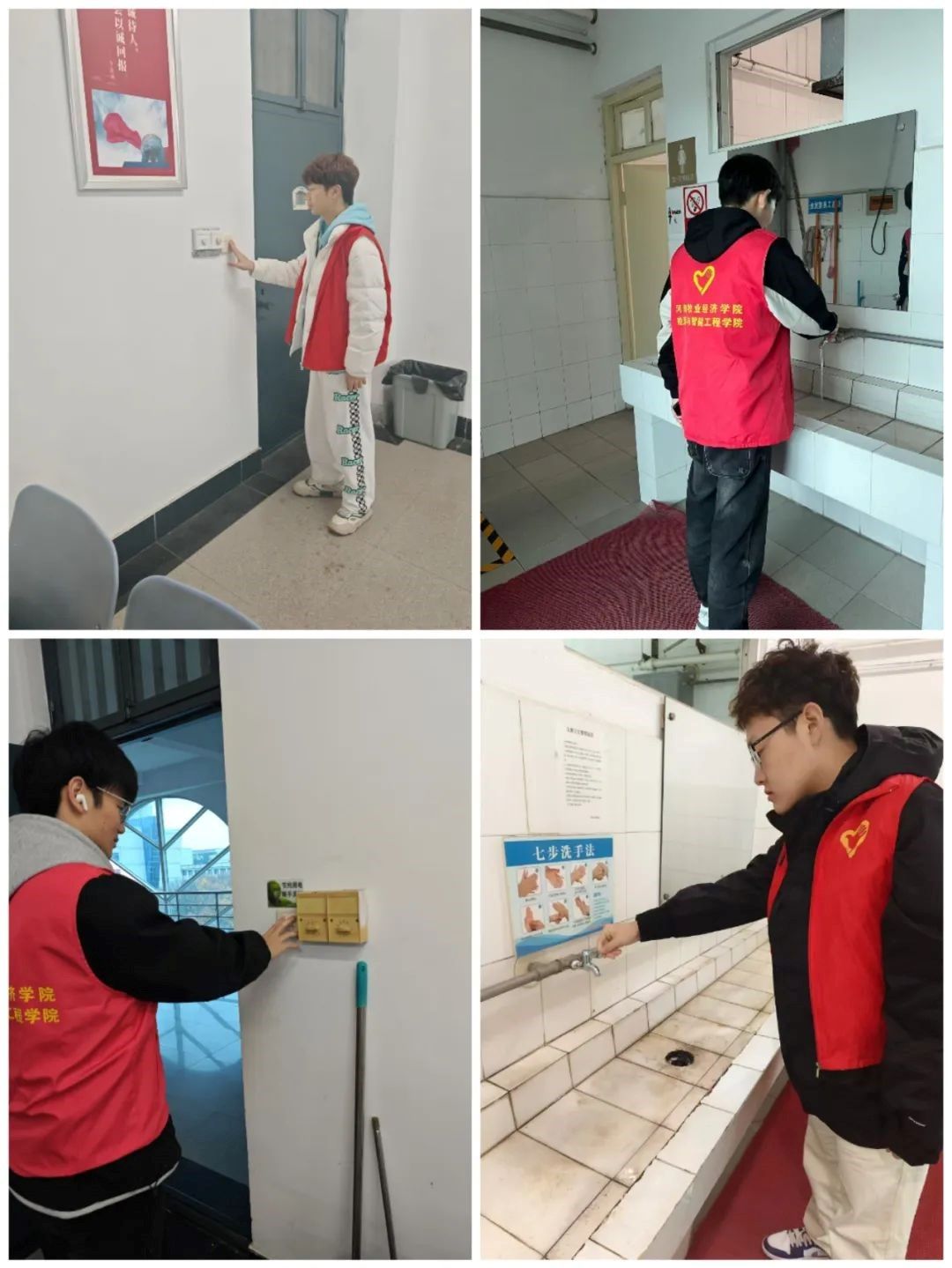 当我们还在思考如何实现低碳节能时,志愿者们已经用实际行动为我们树立了榜样。他们在约定的时间迅速集合,领取任务后,立即奔赴各自负责的教学楼区域。秉承雷锋同志认真负责、一丝不苟的精神,志愿者们展开了细致入微的节能巡查。他们逐层逐间教室仔细检查,不放过任何一个可能存在能源浪费的角落,确保门窗紧闭、水龙头滴水不漏,电灯、多媒体设备等电源均已关闭。