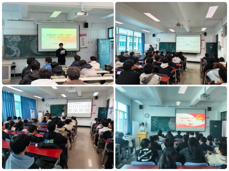 各班团支书首先对《学生手册》《校园文明倡导“十不要”“十做到”》等行为规范展开详细解读。并结合同学们身边的典型案例进行了剖析,引导广大团员和青年以身作则、严格践行,共同维护文明和谐校园环境。在互动交流中,团员青年们踊跃发言,结合自身经历就“如何杜绝校园不文明行为”“如何将文明规范内化为日常习惯”等话题展开了热烈讨论,现场气氛活跃,大家纷纷表示将以实际行动践行校园文明规范,展现青年学子的良好风貌。