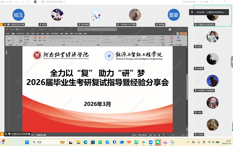 为助力2026届考研学子顺利通过复试,明晰备考方向、掌握应试策略,3月20日,太阳集团tyc234cc举办考研复试指导暨经验分享会,特邀2025届能源与动力工程专业优秀考研学子代表,通过腾讯会议平台为学弟学妹们理清复试备考思路,精准备战复试。