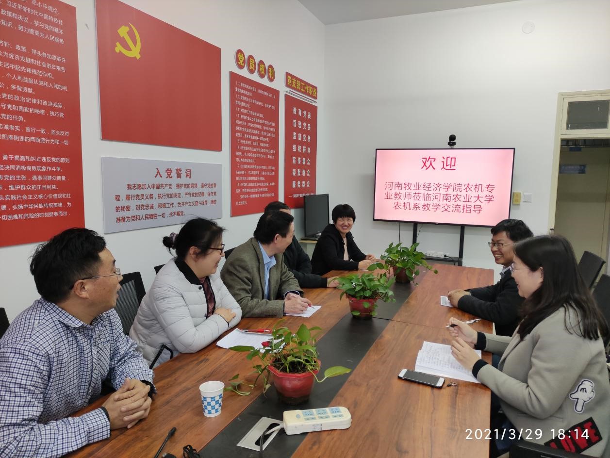 3月29日下午,太阳集团tyc234cc机械工程教研室蒋爱德主任、农业机械化及其自动化专业带头人张运真副教授一行赴河南农业大学机电工程学院进行专业调研,受到了机电工程学院农机系领导和老师的热情欢迎并举行了学科发展及专业建设座谈会。