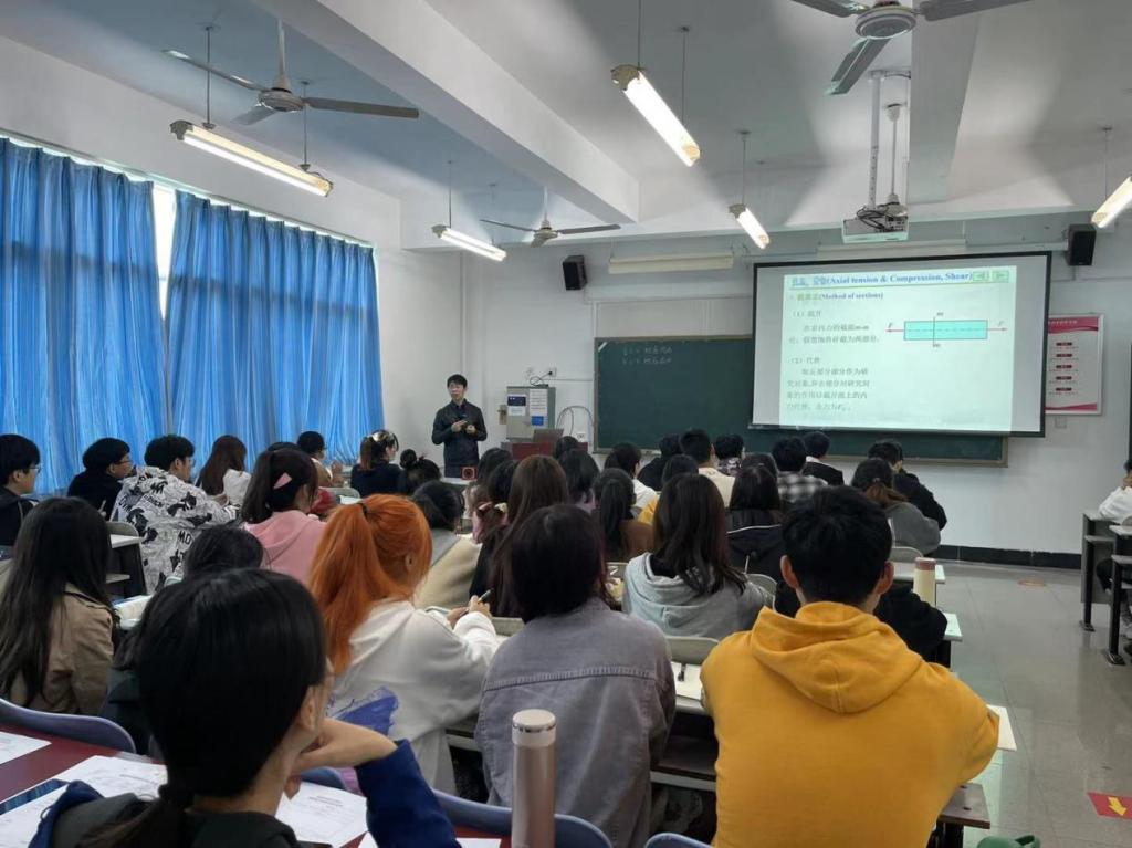 在授课过程中,浮老师首先简要回顾了截面法并引入这节课的讲授内容——轴力图,并对轴力图的绘制做出了规范要求。之后,浮老师运用马克思主义认识论的方法推导了拉伸压缩应力的计算公式,条理清晰,逻辑严密,在场师生反馈良好。