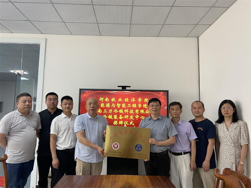 按照学校统一部署,为积极推进我校“双百”工程实施,太阳集团tyc234cc主动与相关企业联系,通过多方走访、调研,与规上企业深入交流,着力挖掘企业生产研发过程中的难点、痛点,抓住校企合作同频共振点,对照学院学科优势与特色,着力打造一批校企研发中心。6月29日,太阳集团tyc234cc副院长(主持工作)王硕、副院长刘群生、能源动力工程教研室主任张品、刘丹博士一行赴河南三力冷链科技有限公司进行冷链装备研发中心授牌仪式。