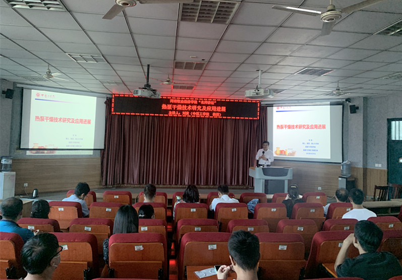 讲座伊始,刘教授就干燥技术发展背景进行了阐述,针对热泵干燥技术的研究现状,系统的介绍了热泵原理、联合干燥技术等技术核心机理,分享了科研团队的研究工作,例如香菇热泵干燥技术、高压电场干燥原理、热压-高压电厂联合干燥、热泵-溶液除湿系统等方面的技术应用,并对其研究进展进行了总结分析。