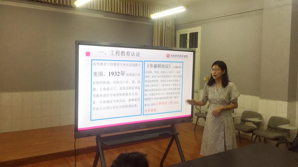 副院长史岳鹏对工程教育专业认证申报工作中的重难点进行了详细分析。首先要明确工程教育专业认证遵循三个基本理念:成果导向、学生中心、持续改进,以培养优秀、卓越工程师为主要目标,而基于工程教育专业认证要求的专业人才培养方案和课程大纲是认证评审重要纲领性文件。汇报经验分享的张品博士、张一帆老师指出相关课程老师需熟悉人才培养方案,明确培养目标与毕业要求、课程与毕业要求之间关系矩阵,并根据课程对毕业要求的支撑关系,各课程组成员需根据工程认证要求修订课程大纲,确定课程目标与毕业要求的关系,设计课程内容,明确考核方式方法和标准。专业认证的核心是课程质量评价机制建立及运行,汇报教师详细讲解了课程目标达成度评价方法及过程、达成度分析报告撰写要点及其注意事项等。