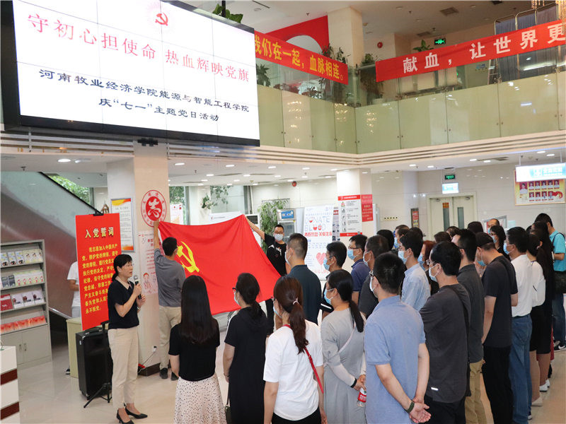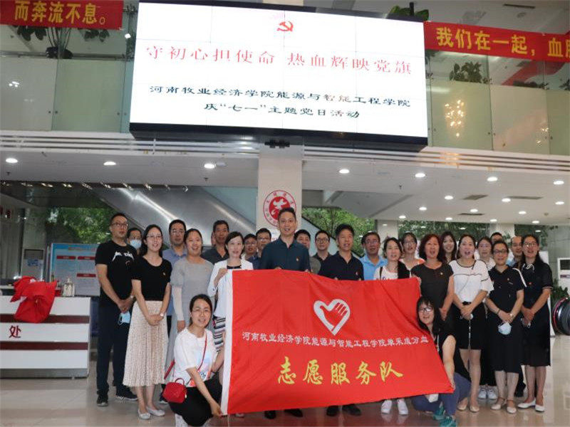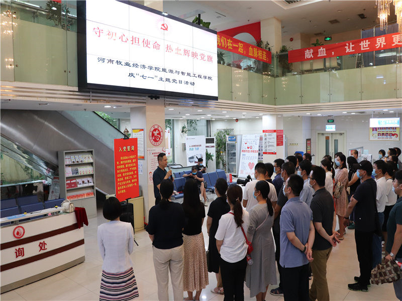 为庆祝中国共产党成立99周年,更好的发挥党员先锋模范作用,引导广大党员争当出彩先锋,能源与智能工程学院党委结合学院特色志愿服务工作,在7月2日下午组织教工支部全体党员和积极分子赴河南省红十字血液中心参观学习,开展以“守初心担使命 ,热血辉映党旗”的主题党日活动。