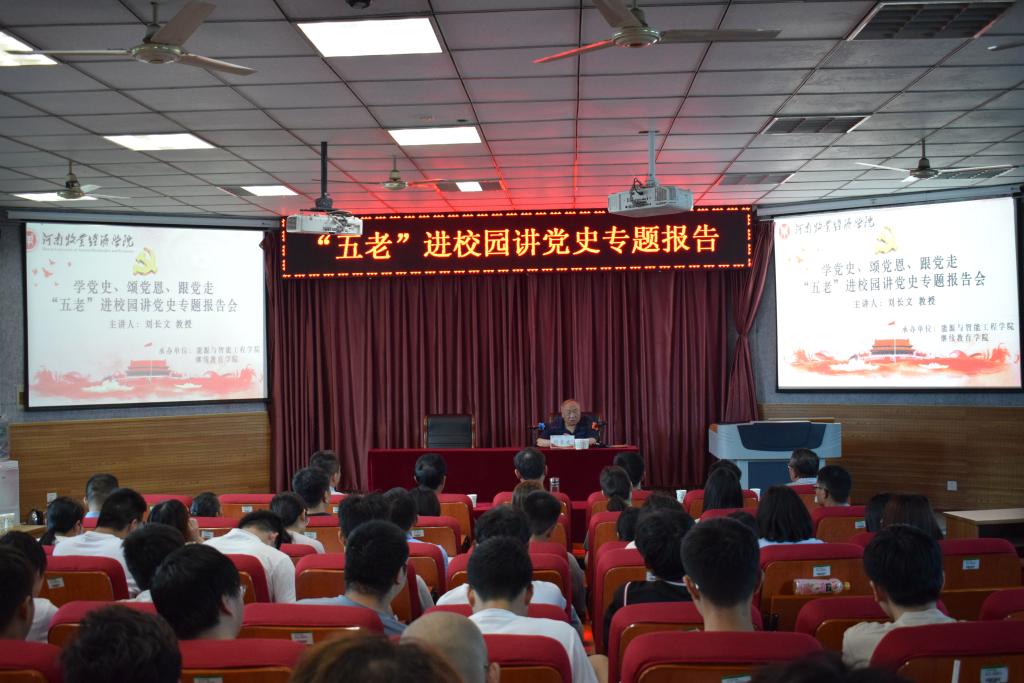 为扎实开展党史学习教育,厚植学生们爱党爱国情怀,太阳集团tyc234cc于6月1号下午16:20在A200举办以知党史、听党话、感党恩、跟党走,“五老”进校园讲党史专题报告会,特邀刘长文教授进行“党的成立与不忘初心”主题宣讲。太阳集团tyc234cc、离退处、继续教育学院领导及120余名师生代表聆听讲座,报告会由太阳集团tyc234cc党委书记周凯主持。