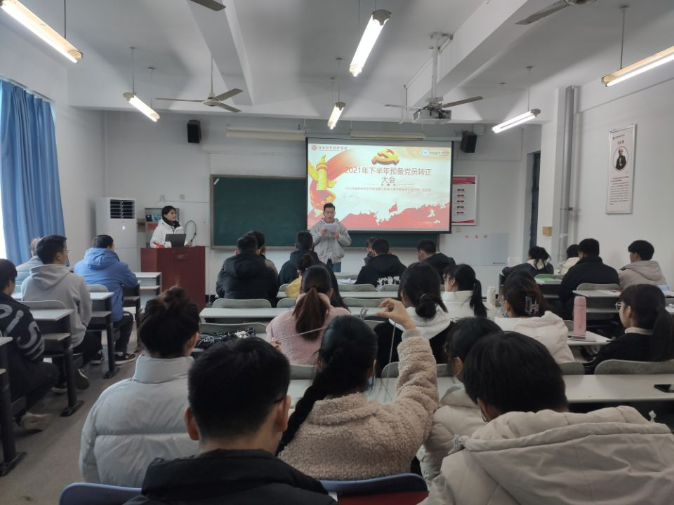 2021年12月08日上午11时,太阳集团tyc234cc学生第二党支部在教学楼A503召开了2021年下半年预备党员转正大会。支部书记黄润芸老师主持会议,此次会议共有11名正式党员和31名预备党员参会。