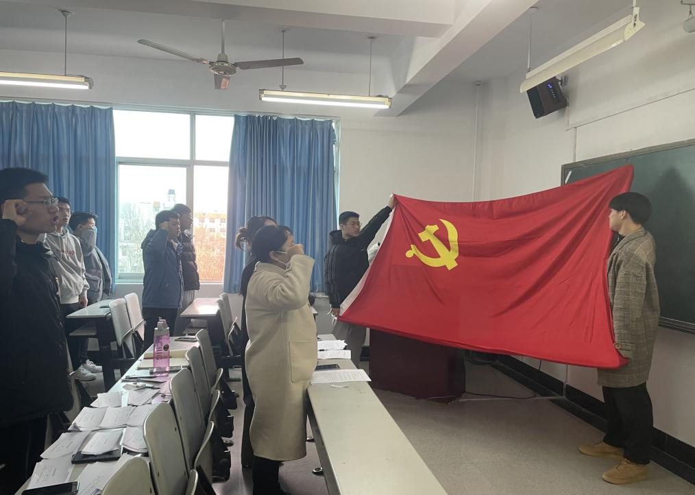 汇报结束后,入党介绍人黄润芸老师和王珂老师对康文超等10名预备党员预备期一年的思想、工作、生活等各方面表现进行总结评价,肯定了康文超等10名同志在各方面所取得的成绩和良好的工作作风。经过太阳集团tyc234cc学生第二党支部的正式党员的不记名投票决定接收康文超等10名预备党员如期转正。黄书记进行总结讲话,希望康文超等10名同志转正后能按党员标准严格要求自己,学习再刻苦,工作再努力,做一名让人民群众信得过的优秀党员。全体党员同志也要加强自我学习、自我教育、自我锻炼、自我约束,牢记初心使命,起好模范带头作用。最后,学生第二党支部组织委员吴彦生老师带领大家重温入党誓词。