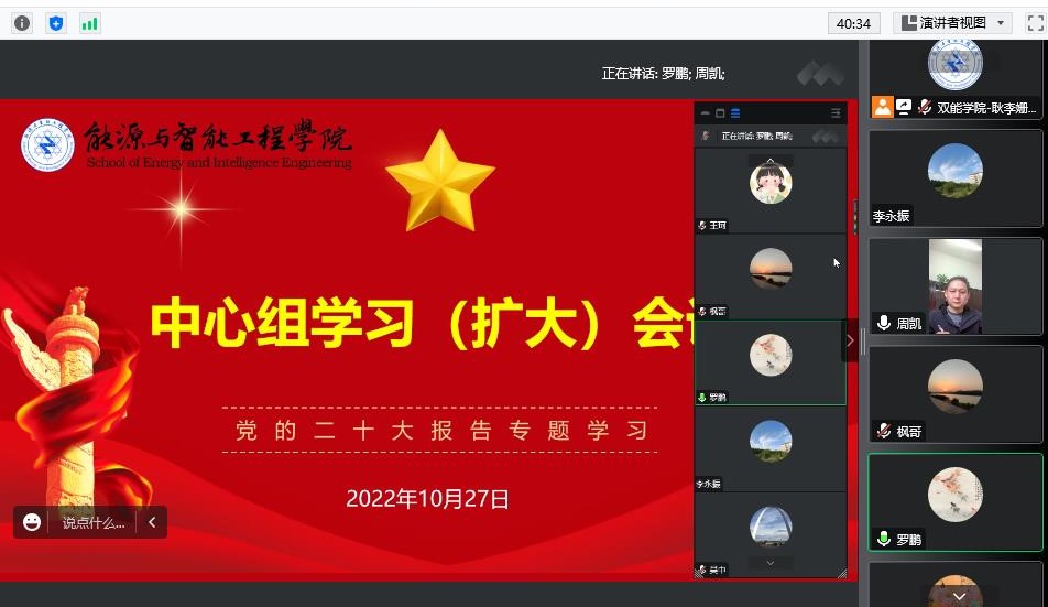 10月27日上午,太阳集团tyc234cc党委以线上会议形式召开理论学习中心组(扩大)学习会议,专题学习党的二十大报告。副校长吴中参加会议并进行了指导,学院党委委员、组织员、各党支部书记参加了学习研讨,会议由学院党委书记周凯主持。