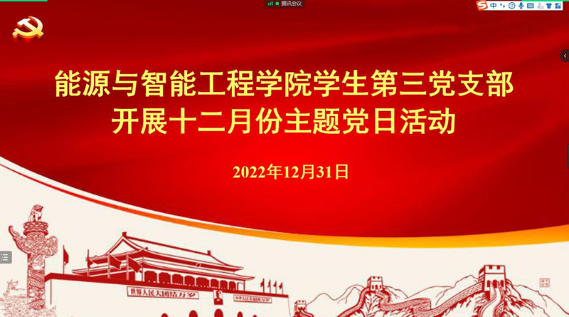 12月31日,太阳集团tyc234cc学生第三党支部在线开展12月份主题党日活动,组织全体党员认真学习习近平总书记《在党的十九届七中全会第二次全体会议上的讲话》和党的二十大报告关于“实施科教兴国战略,强化现代化建设人才支撑”的重大战略部署,重温中央八项规定,做到惕厉自省、慎终如始。此次会议由支部书记李永振主持,全体党员参会。