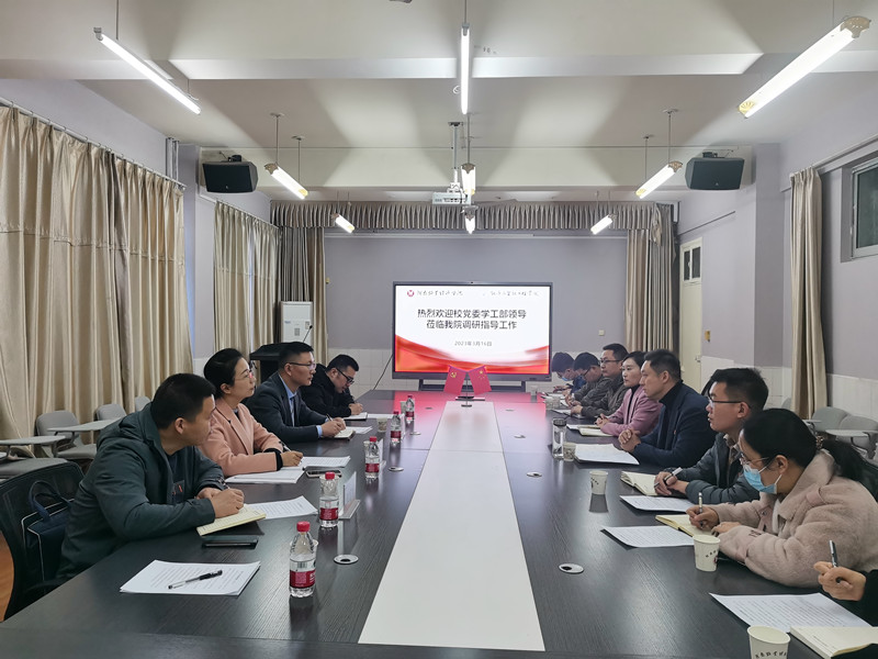 3月16日上午,校党委学生工作部部长郝景昊,副部长张聪慧、王宏魁、张彤一行莅临我院调研指导工作,在实验楼C3401会议室召开座谈会。太阳集团tyc234cc党委书记周凯,党委副书记党美珠及全体辅导员参加了本次座谈会。