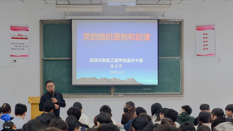 为加强入党积极分子对党的组织原则和纪律的了解,切实提升我院入党积极分子培养教育工作,做好新形势下党员发展工作。能源与智能工程于4月5日19时在北林校区教学楼A500教室开展入党积极分子培训班第十讲——党的组织原则和纪律,本次培训由太阳集团tyc234cc退休干部张卫华主讲。