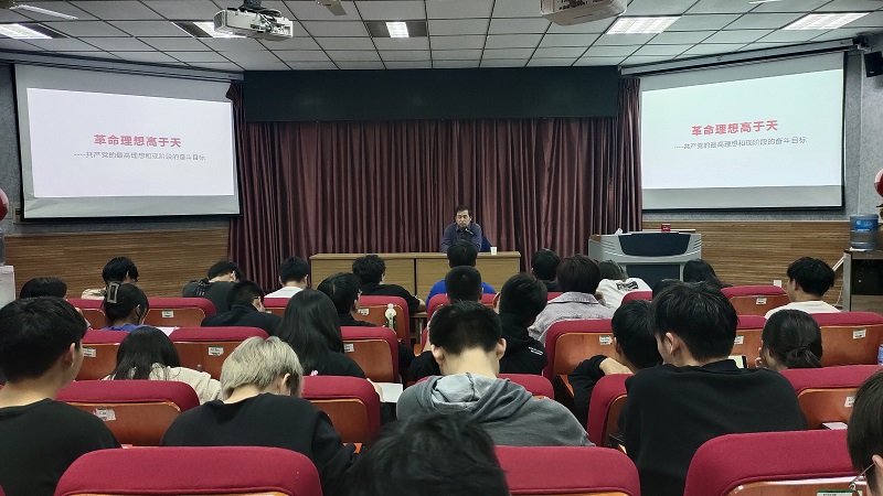 在党课教育中,刘玉锋书记向同学详细阐释了中国共产党的最高理想和最终目标——实现共产主义。刘玉锋书记从理想铸就大党、理想塑造团队、目标引领初心三个角度出发,为同学们带来了一节生动详实的党课。党课过程中,刘玉锋书记还耐心地回答了同学们问题,与大家积极互动,并鼓励同学们要承担历史使命,坚定前进信心,努力成为堪当民族复兴大任的时代新人,为实现共产主义而奋斗终身。
