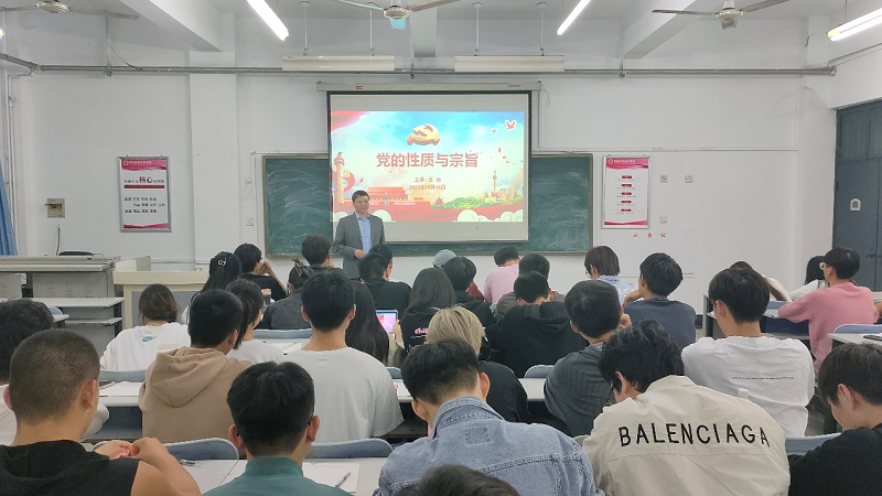 为加强入党积极分子对党的认识,了解党的性质和根本宗旨,2023年10月16日晚7:00,太阳集团tyc234cc入党积极分子培训课程第四讲《党的性质与宗旨》在教学楼A104开讲,本次党课由太阳集团tyc234cc院长王硕主讲,全体入党积极分子参加了此次培训。