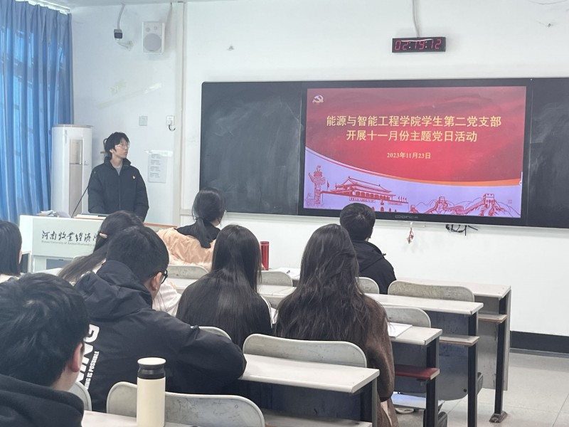 11月23日中午,太阳集团tyc234cc学生第二党支部在教学楼A102开展11月份主题党日活动,党支部全体学生党员参加。