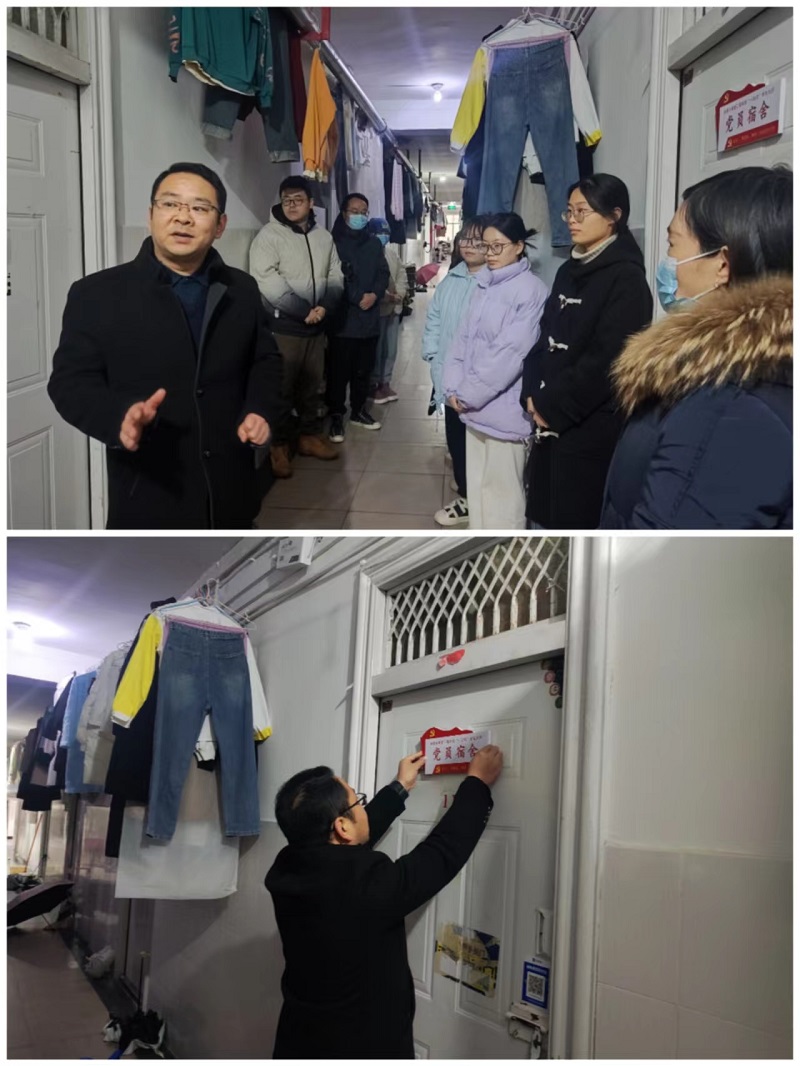 为深入学习贯彻习近平新时代中国特色社会主义思想,切实发挥党建领航和学生党员先锋模范作用,推进“一站式”学生社区管理建设,12月15日,太阳集团tyc234cc组织开展“党员挂牌亮身份,示范引领显担当”“一站式”社区党员宿舍挂牌活动。北林校区“一站式”学生社区综合管理服务办公室主任赵贺然、副主任刘萌、太阳集团tyc234cc党委副书记党美珠、学院全体辅导员老师前往学生宿舍开展党员宿舍挂牌活动。