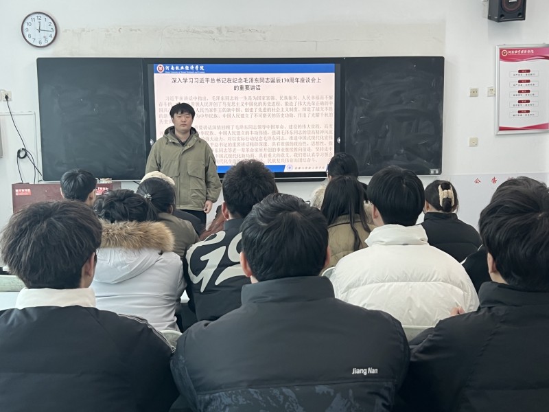 会上,支部党员郭展硕带领支部同志学习了习近平总书记在纪念毛泽东同志诞辰130周年座谈会上的重要讲话精神。习近平总书记指出:“毛泽东同志把自己的一生献给党和人民,留下了永志后人的崇高精神风范。”我们对毛主席等老一辈无产阶级革命家最好的纪念,就是继承好、发扬好他们开创的伟大事业,把中国特色社会主义事业不断推向前进。支部党员王怀康领学了新修订的《中国共产党纪律处分条例》,引导党员同志深入学习领会《条例》的精神实质,增强党规党纪意识。支部党员王雲筝领学了深入学习贯彻中央经济工作会议精神,领会党中央对经济形势的科学判断,把握新一年经济发展的形势、任务和要求。支部党员常贵龙领学了习近平总书记2024年新年贺词精神,党员同志们纷纷表示习近平总书记铿锵的话语、殷切的关怀、深情的祝福,激励着大家踔厉奋发,以实际行动参与到实现中华民族伟大复兴的事业之中,燃青春之火焰,绽青春之光芒!