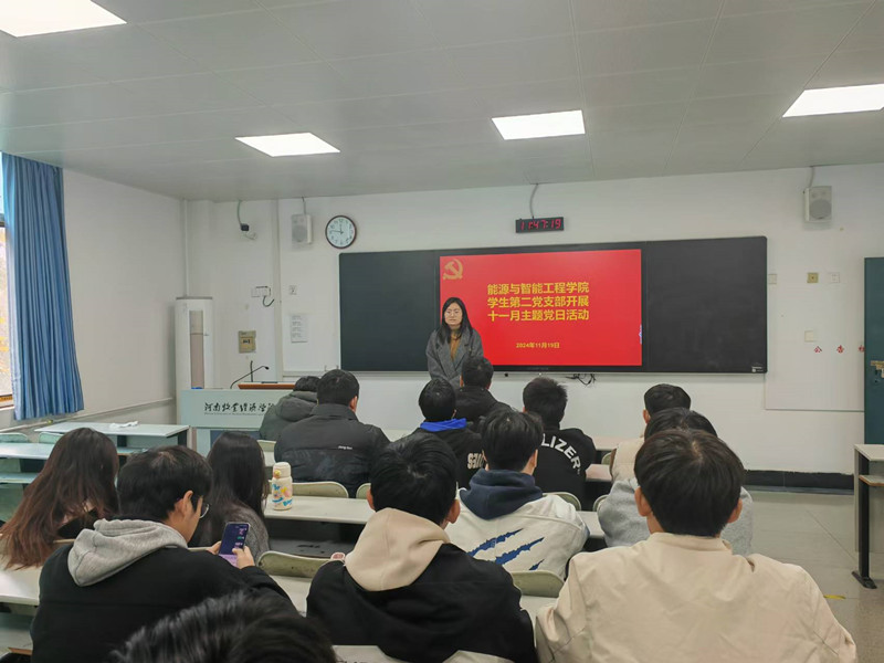 11月19日中午,太阳集团tyc234cc学生第二党支部在教学楼A203开展2024年11月份主题党日活动,本次活动由学生第二党支部书记黄冰主持,支部全体党员参加。