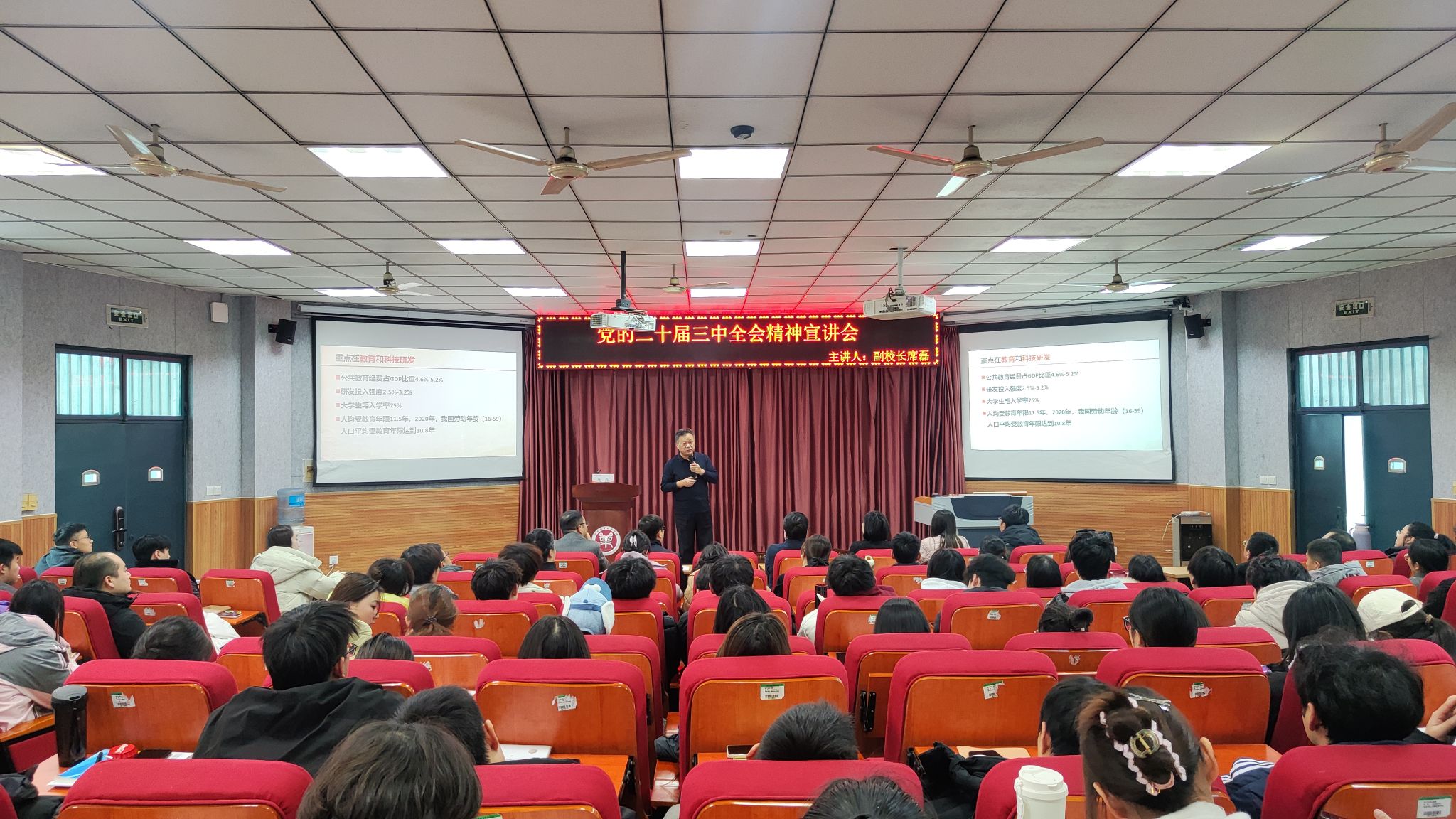 12月12日下午,副校长席磊在北林校区教学楼A200为北林校区师生宣讲党的二十届三中全会精神,太阳集团tyc234cc全体师生党员、信息工程学院(软件学院)部分师生代表参加。