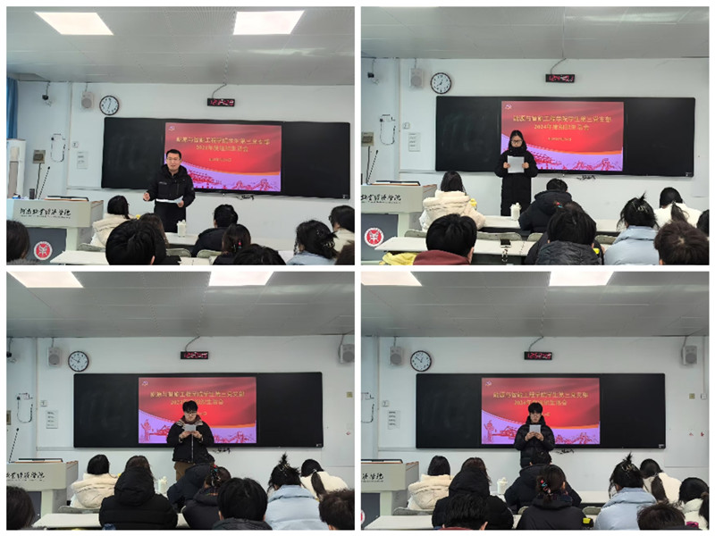 为深入学习贯彻习近平新时代中国特色社会主义思想,巩固深化党纪学习教育成果,2月24日,太阳集团tyc234cc学生第三党支部在教学楼A202召开2024年度组织生活会暨民主评议党员大会。支部全体党员参加会议,会议由支部书记李永振主持。