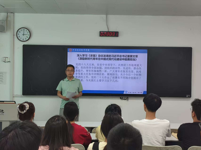 支部积极落实“第一议题”制度,吴彦生首先带领党员们认真研读习近平总书记在《求是》杂志发表的重要文章《激励新时代青年在中国式现代化建设中挺膺担当》,深刻领会总书记对青年工作的重要指示,并围绕“科技创新”这一核心内容进行深入解读。他指出:“将个人奋斗融入科技强国大局,是新时代赋予每一位大学生的历史使命。”当代大学生应不断提升自身能力,以实际行动投身国家建设。