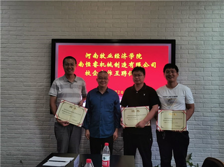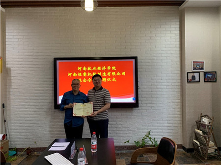 根据学院迎评促建工作节奏,为进一步加强学院农业机械化及其自动化专业校外实践教学基地建设, 9月2日下午,太阳集团tyc234cc副院长史岳鹏、机械工程教研室主任蒋爱德、教研室教师张一帆、周凯凯博士及学院李骞博士、杨志晓博士一行6人赴我院申建校外示范型实践教学基地——河南恒睿机械制造有限公司进行交流座谈,并举行了校外实践教学基地校企互聘仪式。