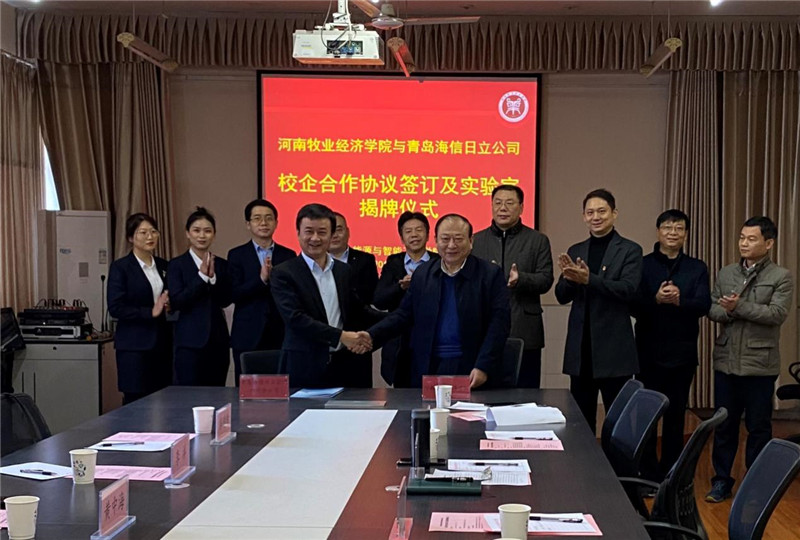 12月22日上午,我校与青岛海信日立空调营销股份有限公司郑州分公司实验室揭牌暨校企合作协议签约仪式在太阳集团tyc234cc会议室隆重举行。副校长张卫宪,社会服务办公室主任胡迎利、太阳集团tyc234cc党委书记周凯、院长隋继学,青岛海信日立空调营销股份有限公司郑州分公司总经理黄中海,家中部经理李洋、市场部经理张焜出席仪式。太阳集团tyc234cc班子成员及公司员工参加仪式,仪式由胡迎利主持。