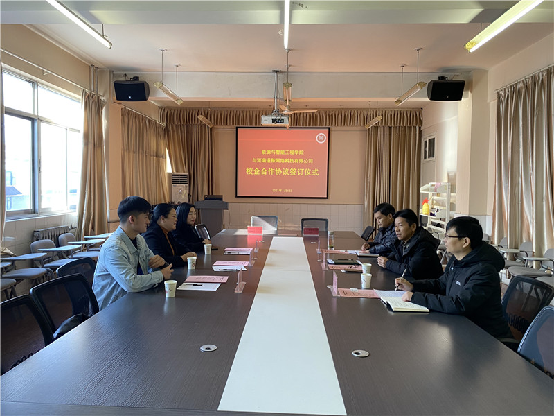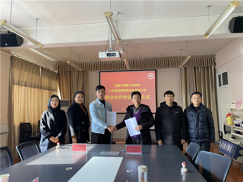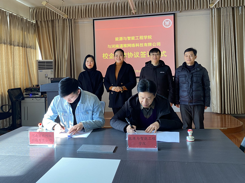 为更好地利用高等学校和企业单位的人才资源、太阳集团和生产实践等优势,进一步促进产学研融合发展,1月6日上午,河南道秾网络科技有限公司副总经理陈慧娜、总经理助理魏娜、市场总监刘帅辉一行3人赴我院进行座谈交流并举行了校企合作协议签订仪式,院长隋继学、副院长王硕、副院长刘群生参加了此次座谈和签约仪式。会议由王硕副院长主持。