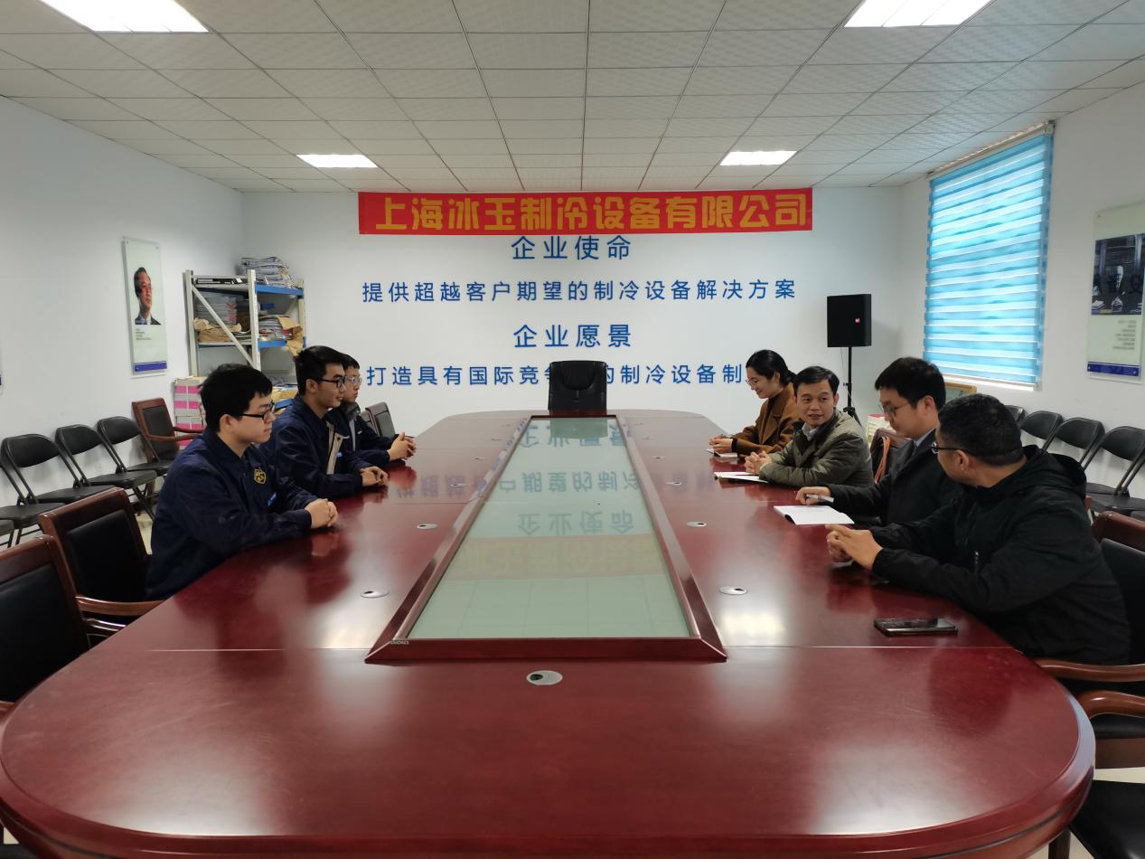 2021年4月3日,太阳集团tyc234cc副院长刘群生、能源与动力工程教研室教师吴彦生、黄冰一行三人来到洛阳冰玉制冷设备制作有限公司(上海冰玉制冷有限公司之洛阳制造基地)检查能源与动力工程专业学生的毕业实习情况,并与企业领导就校企合作、人才培养等进行了深入交流。我院教师一行三人受到了洛阳冰玉秦跃生董事长、程红光总经理等人的热烈欢迎。