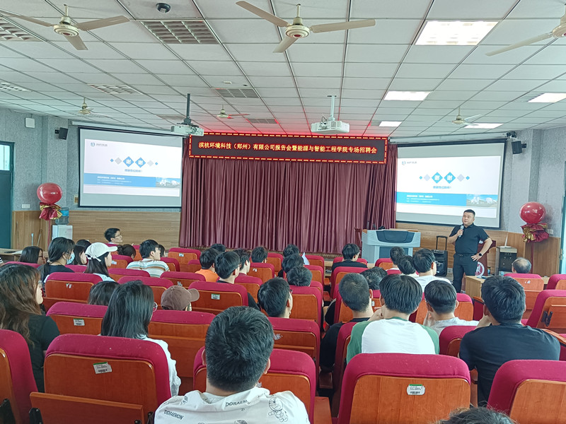 滨杭环境科技(郑州)有限公司创建于2018年,公司致力于新兴能源技术研发,主攻农林废物资源化无害化工程应用。会议伊始,公司经理刘矿通过播放公司宣传视频、展示PPT等方式向同学们介绍了公司的发展历程、企业文化、技术工程化应用、薪资体系、招聘岗位专业和校园招聘流程。对同学们提出的关心事宜,刘经理做了耐心细致的解答,技术总监林炳良做了职业发展成长经验分享,招聘会在热烈的掌声中圆满结束。