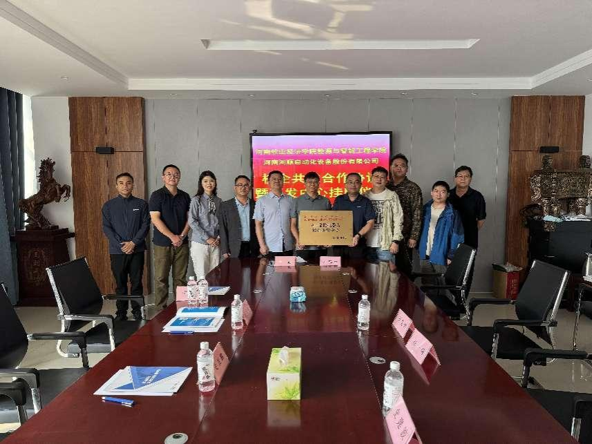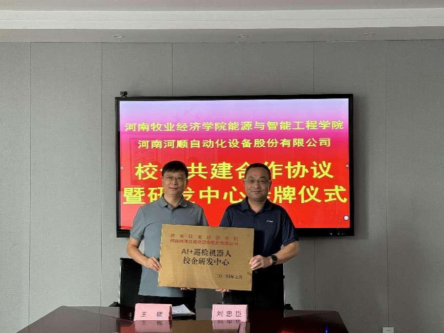 9月27日,学院党委书记赵贺然、院长王硕、科技处副处长史岳鹏及教师代表一行,应邀前往河南河顺自动化设备股份有限公司,隆重举行“AI+巡检机器人校企研发中心”挂牌仪式,并就下一步校企合作工作举行座谈交流。