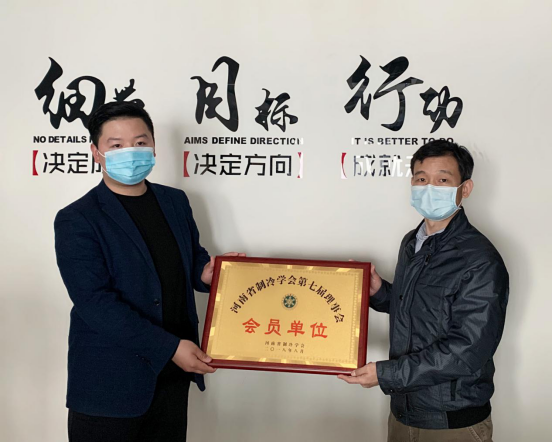 最后,刘群生副秘书长向舒心(南京)环保能源科技有限公司郑州办事处颁授了河南省制冷学会团体会员单位铜牌并合影留念。