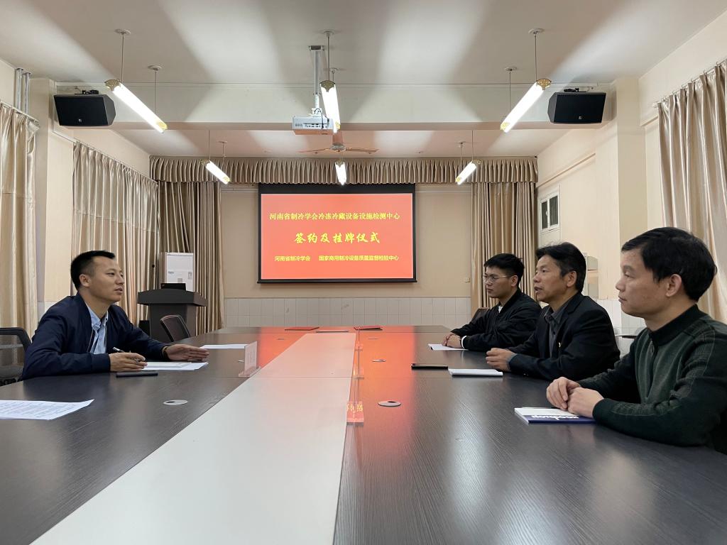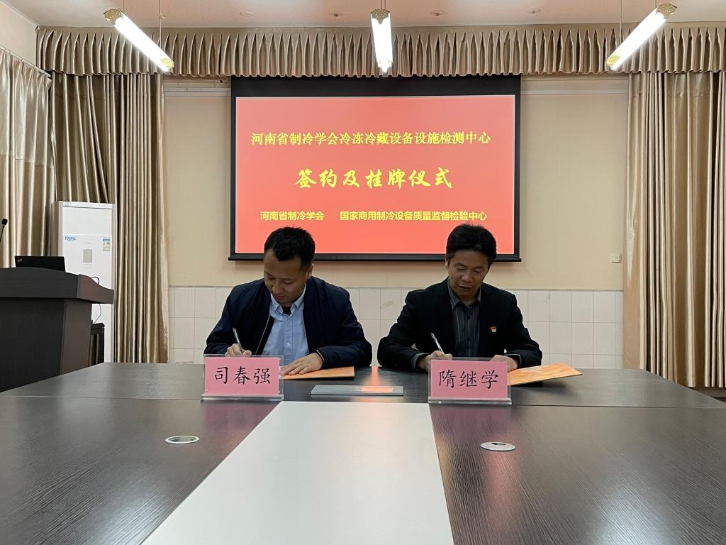 2021年3月5日,由国家商用制冷设备质量监督检验中心与河南省制冷学会联合成立的“河南省制冷学会冷冻冷藏设备设施检测中心”签约及挂牌仪式在河南省制冷学会会议室隆重举行。出席签约及挂牌仪式的有国家商用制冷设备质量监督检验中心主任司春强、河南省制冷学会副理事长兼秘书长隋继学、河南省制冷学会副秘书长刘群生、河南省制冷学会办公室副主任李锡石。