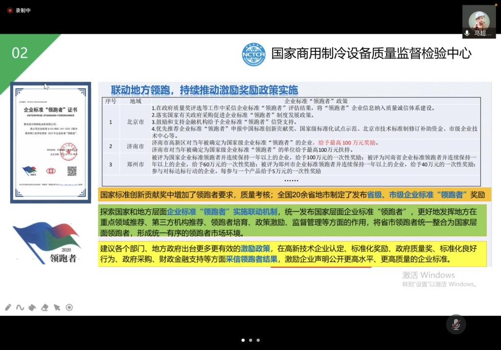 2021年4月23日上午,由中国节能协会绿色高效用能产品专业委员会、中国标准化研究院资环分院、企业标准“领跑者”联盟为指导,绿色冷链工作组、国家商用制冷设备制冷监督检验中心主办的《“领跑者”标准评价要求 冷风机》、《“领跑者”标准评价要求 装配式冷库》、《“领跑者”标准评价要求 自动售货机》和《“领跑者”标准评价要求 制冷集装箱》标准启动会在线上召开,中国标准化研究院资环分院、绿色冷链工作组、生产企业等40多位代表参加本次启动会,河南省制冷学会秘书长隋继学、副秘书长刘群生、办公室副主任李锡石、黄冰全程参与。