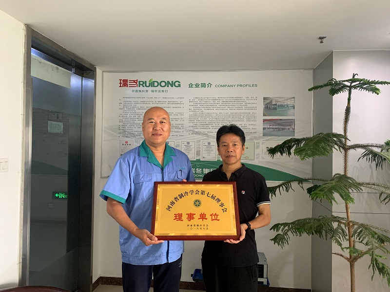 最后,隋继学秘书长向瑞冬集团股份有限公司郑州办事处颁授了河南省制冷学会团体会员单位铜牌并合影留念。