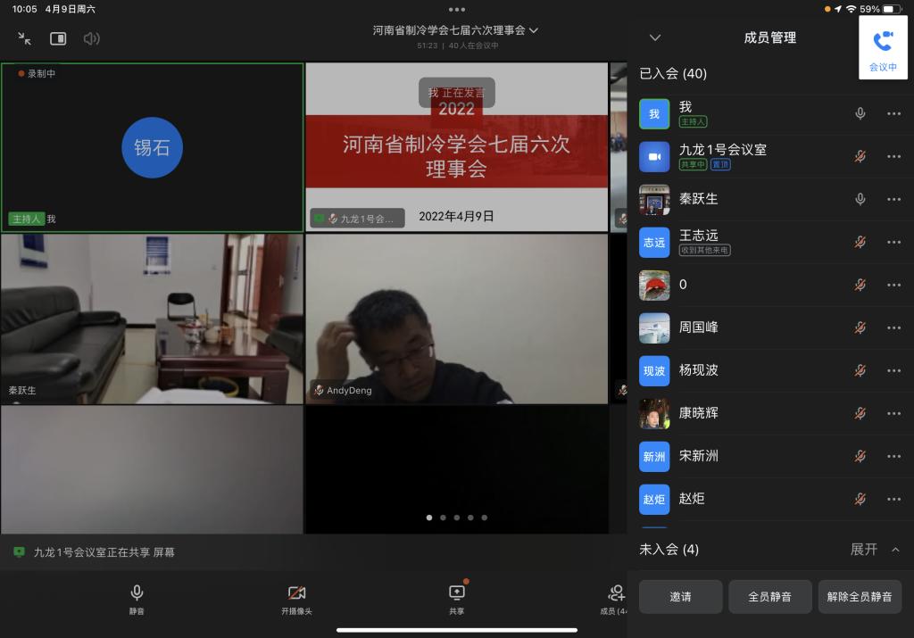 2022年4月9日,河南省制冷学会采用线上线下相结合的方式召开了七届六次理事会。59名理事参加了本次理事会。会议由河南省制冷学会理事长龚毅教授主持。