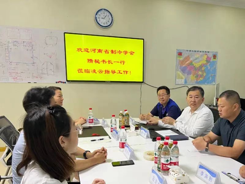 2022年6月14日上午,河南省制冷学会秘书长隋继学、学会办公室主任李锡石、科宣部部长段欢欢、国际部部长张静前往河南凌云制冷科技有限公司开展“百会链千企”科技志愿服务活动。在凌云制冷科技有限公司会议室,受到了凌云制冷公司董事长刘壮志、总经理杨一帆、生产副总李洪利、总工程师朱景申的热情接待。