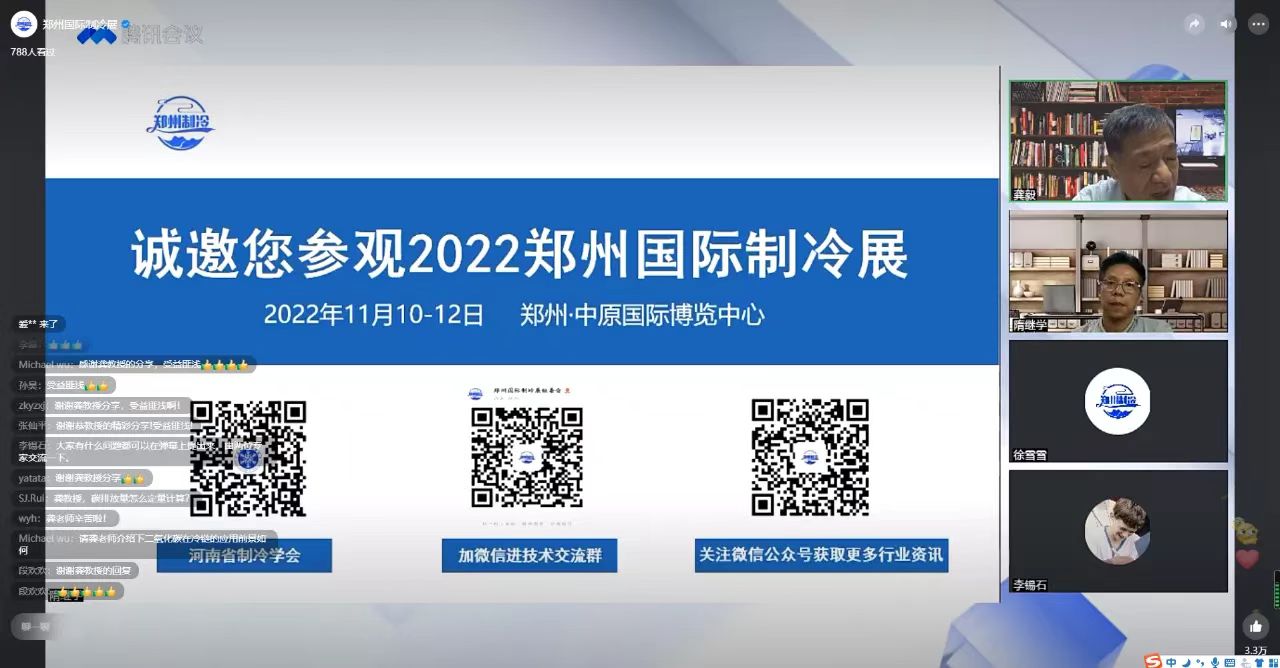 2022年7月15日,由河南省制冷学会、郑州国际制冷展组委会联合举办的“百会链千企”系列讲座——《河南省制冷空调行业现状与发展》顺利开播。学会特别邀请郑州轻工业大学原副校长、河南省制冷学会理事长龚毅教授线上开讲,学会秘书长隋继学教授主持直播会。本次直播会800多人次在线观看,500多人次回放观看,总计达1300多次观看。