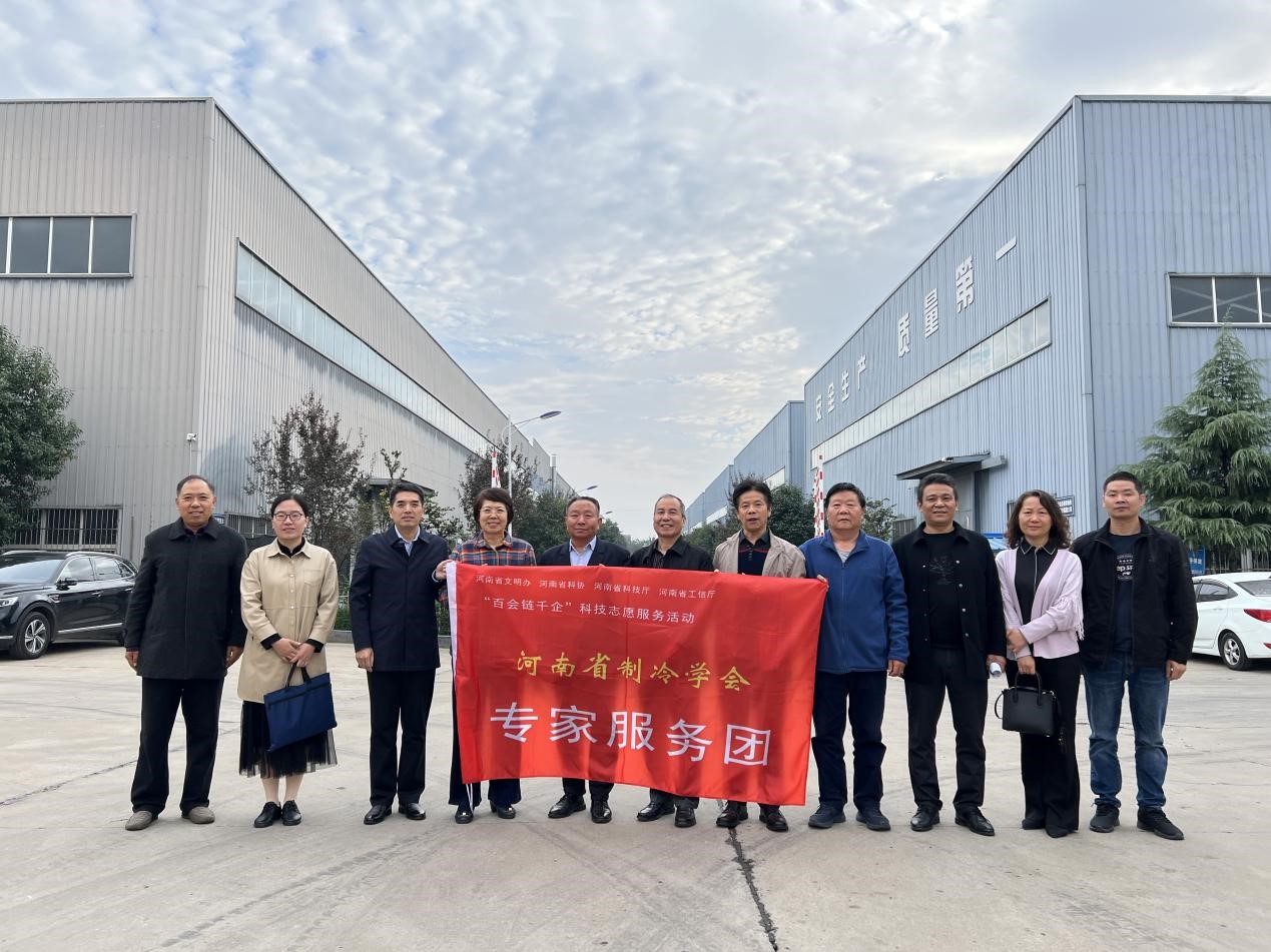 为推进“百会链千企”科技志愿服务活动深入生产一线,充分利用学会人才资源优势服务会员企业,深化会企合作。2022年10月13日,河南省制冷学会受洛阳市科协邀请,赴学会会员单位洛阳冰玉制冷设备制造有限公司开展了科技志愿服务活动。洛阳市科学技术协会副主席马新红、学会部部长贺江伟、洛阳市老城区科协主席吉鸿敏、巷城区科协副主席李春会、河南省制冷学会秘书长隋继学、国际部部长张静、特邀专家吴超杰、办公室主任李锡石参加了活动。