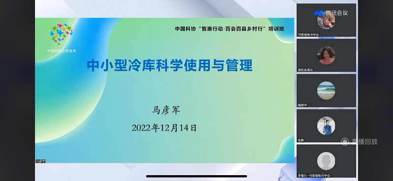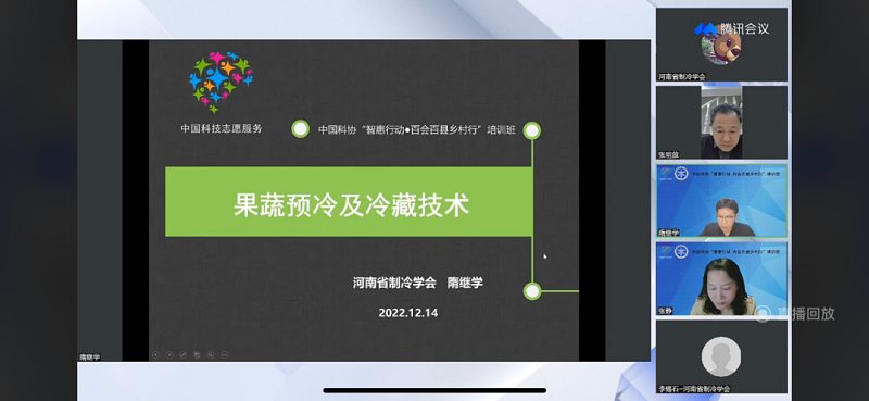 12月14日,由中国科协科普部、中宣部志愿服务促进中心发起,中国科协农村专业技术服务中心指导,河南省制冷学会主办,原阳县科工信局协办的“智惠行动·百会百县乡村行”文明实践科技志愿服务之果蔬冷藏保鲜培训班活动成功举办,原阳县科工信局党组书记张明放在开班仪式上致辞。活动采用腾讯会议与腾讯视频号直播平台同时进行,观看数量达到370多人次。
