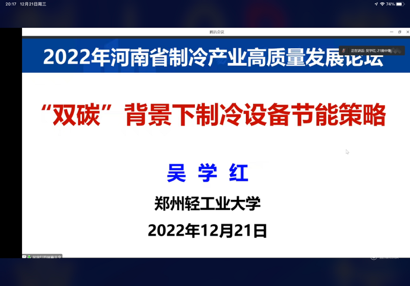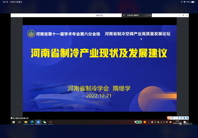 为了进一步加强对前沿科学技术的探索,促进我省制冷产业升级和科技进步。12月21日,由河南省科学技术协会、南阳市人民政府主办,河南省制冷学会、南阳市科学技术协会承办,河南双鑫消防环保设备制造有限公司协办的“河南省制冷产业高质量发展论坛”成功召开。会议采用视频号直播与腾讯会议在线观看相结合的方式进行,两个视频号观众合计超过750人次。河南省制冷学会副秘书长刘群生、梁坤峰主持了本次会议。