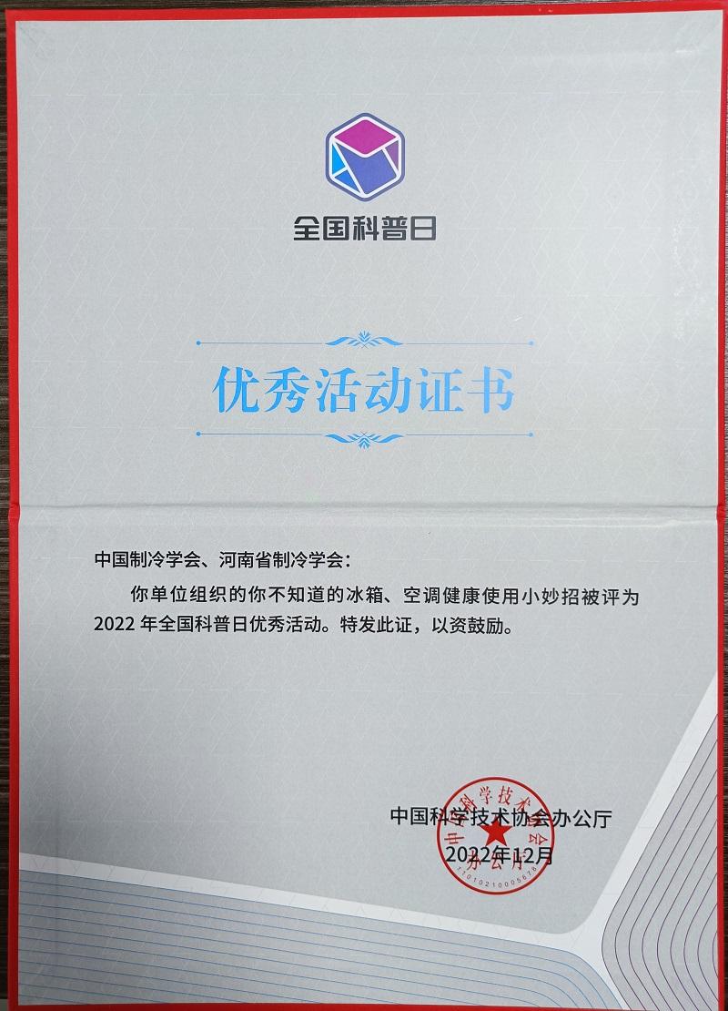 河南省省制冷学会首次荣获2022年全国科普日优秀活动
