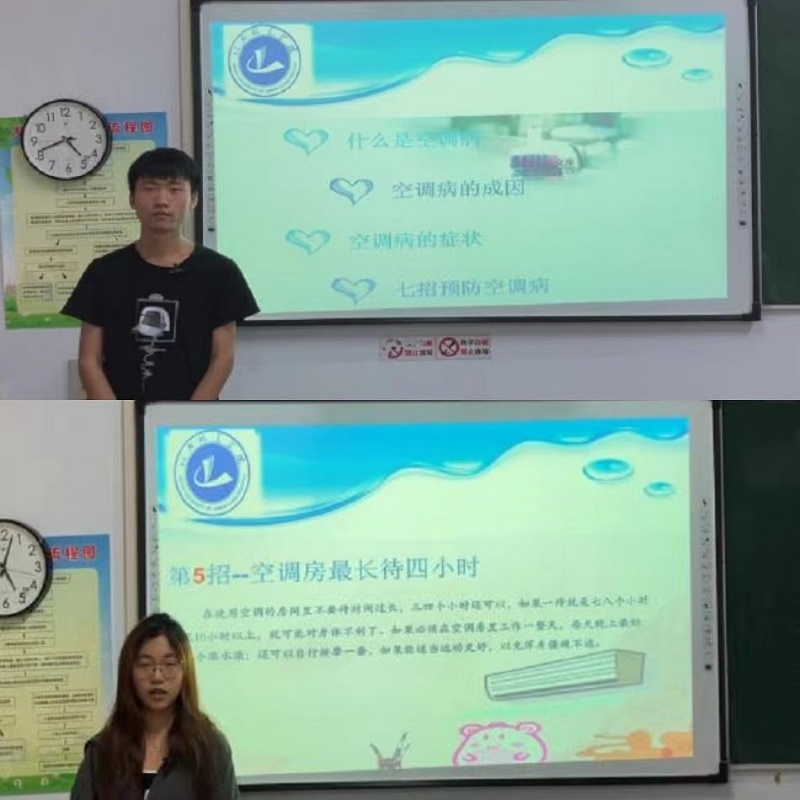 2023年9月17日,河南城建学院能源与建筑环境工程学院的志愿者们利用课余时间,走进教室,为同学们介绍空调使用以及预防空调病的相关内容。