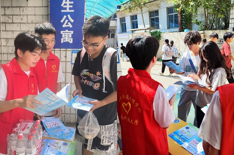 志愿者们向同学们进行科普宣传及发放科普读物