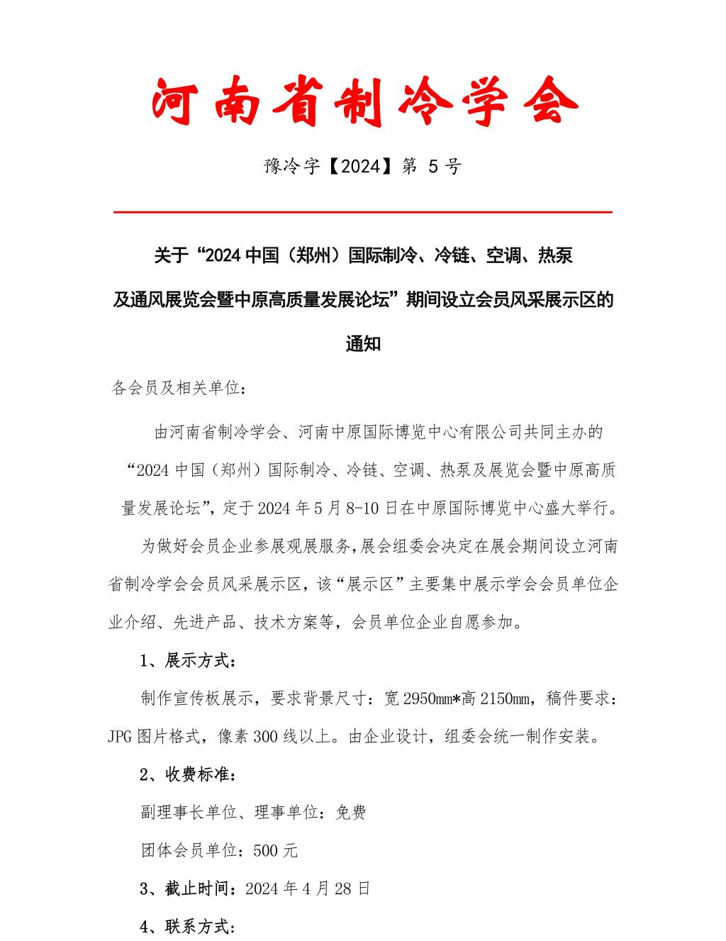 展会通知‖关于在“郑州制冷展”期间设立会员风采展示区的通知