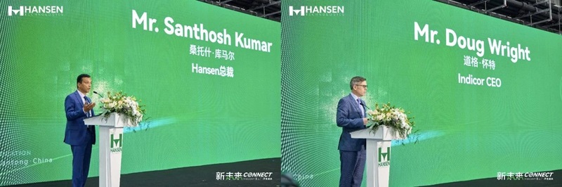 Indicor集团首席执行官Doug Wright、HANSEN公司总裁Santhosh Kumar、HANSEN公司中国区总经理赵永良、HANSEN公司中国区全国销售经理王万辉等出席开业仪式并致辞。