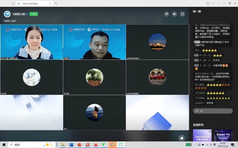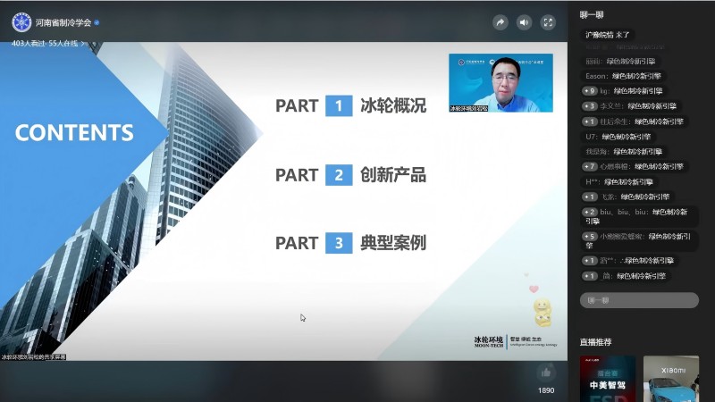 2025年2月26日,由河南省科学技术协会指导,河南省制冷学会和飞熊制冷展组委会联合主办的“百会链千企”云课堂第二十期——“绿色制冷新引擎:冰轮环境工业冷冻创新产品”顺利开播。本次活动特别邀请了冰轮环境应用技术总监、高级工程师刘岩松担任主讲嘉宾,河南省制冷学会副秘书长刘群生主持。本次活动通过河南省制冷学会和飞熊制冷展两个平台视频号同时直播,受到了业界同行的广泛关注,直播观看量超过了6000人次。