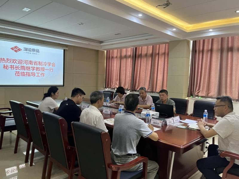 2025 年 8 月 7 日,河南省制冷学会秘书长隋继学、副秘书长刘群生、办公室主任李锡石、办公室副主任黄冰一行专程赴濮阳市增运食品有限公司开展走访交流活动。此次走访旨在深入了解企业在制冷技术应用、生产运营及产业发展等方面的实际情况,加强学会与企业间的技术交流与合作,助力食品制冷行业高质量发展。