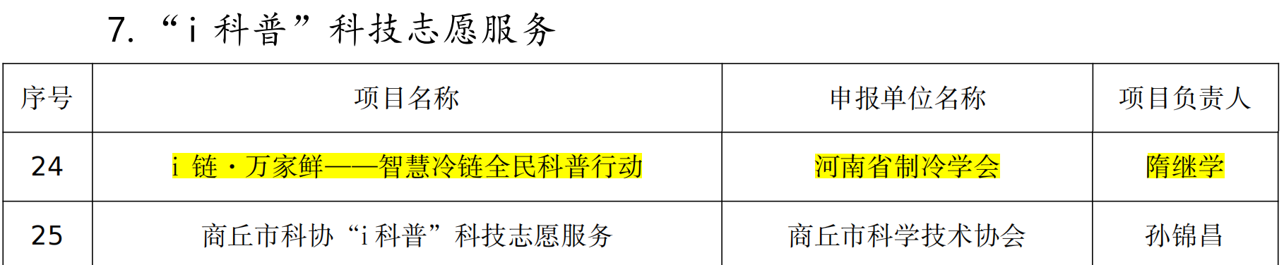 根据《河南省科协关于组织申报2026 年度学会学术项目的通知》(豫科协发〔2025〕59号)和《河南省科协关于组织申报2026年度科普项目的通知》(豫科协发〔2025〕27号)文件要求,经公开申报、形式审查、专家评审、网上公示等程序,省科协确定对63个学术交流活动项目,10个学会协同创新项目,129个青年人才培育项目,51个学会能力提升项目,8个海外及港澳台交流合作项目和249个科普项目予以立项。