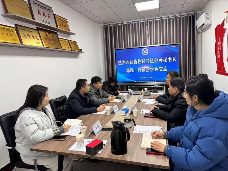 2026年2月2日,河南省物流与采购联合会冷链行业分会秘书长郭鹏率队,与物流与电商学院副院长李金峰、专业教师夏静及分会相关负责同志一行,专程到访河南省制冷学会,进行座谈交流,旨在增进了解、探讨合作、协同发力,共同助推河南省冷链与制冷产业高质量发展。河南省制冷学会秘书长隋继学,副秘书长刘群生,科宣部部长段欢欢,办公室副主任黄冰等热情接待了来访嘉宾。